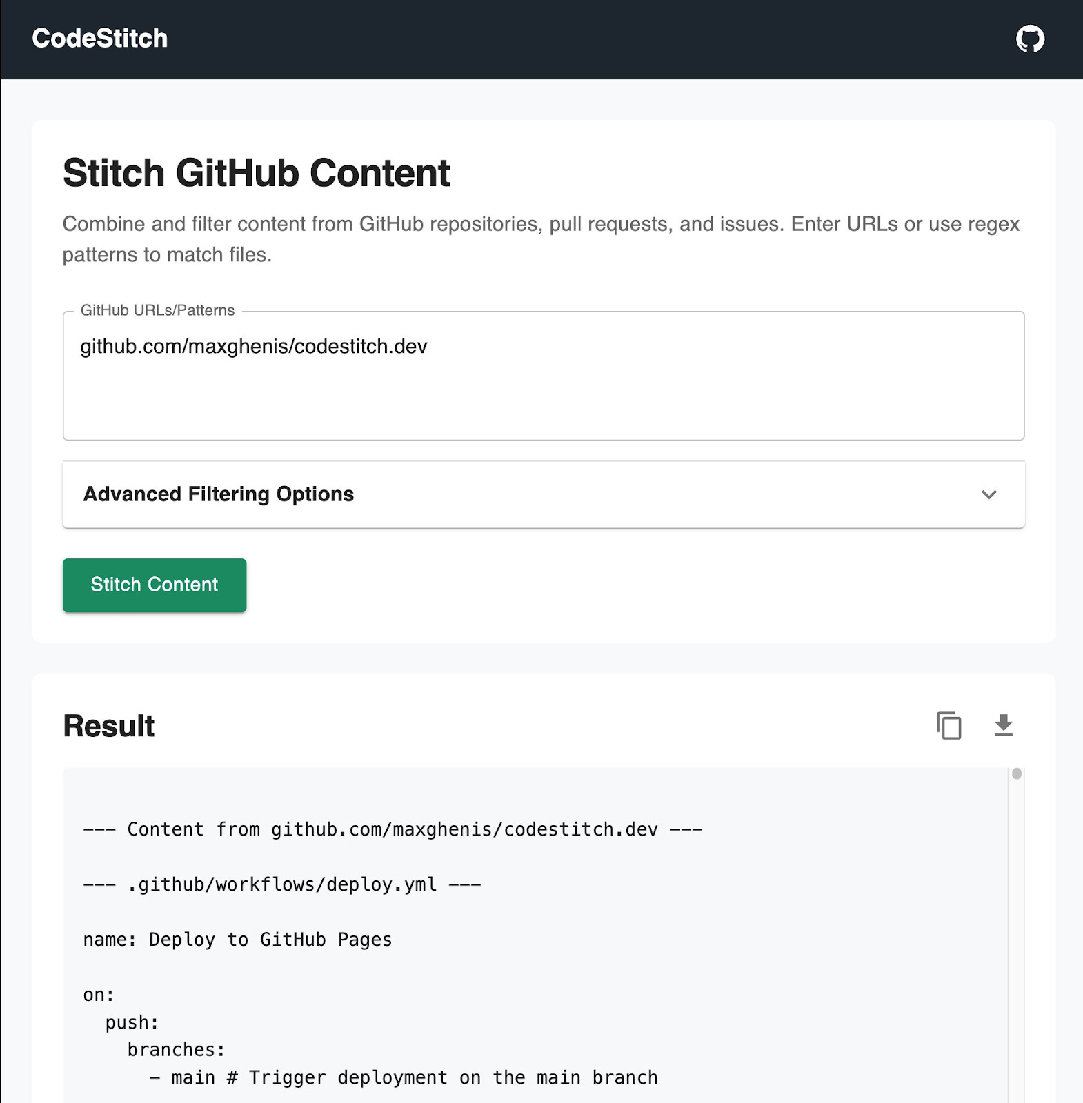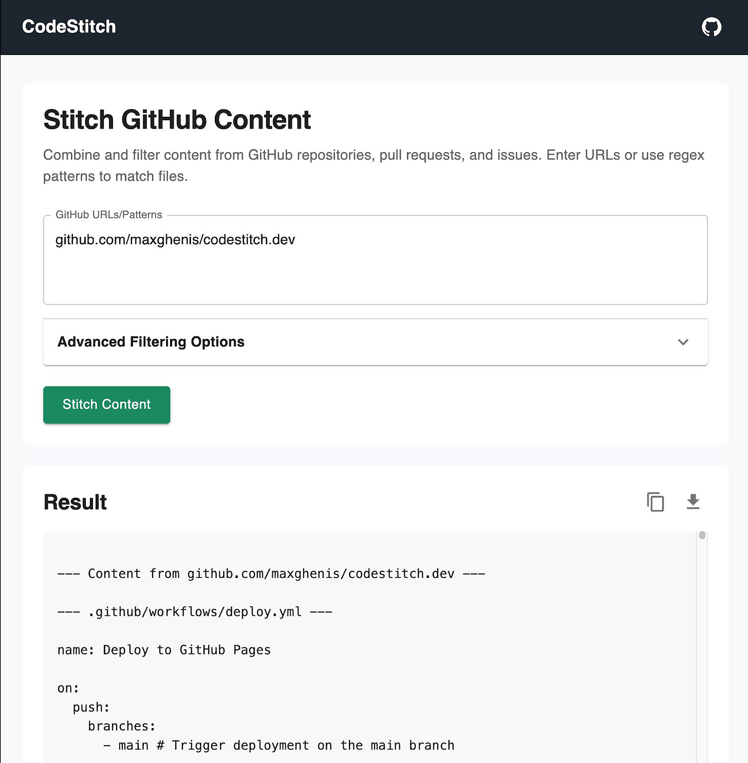 codestitch.dev stitches GitHub repos, PRs, and issues into single text files to make it easier to give code as context to AI assistants. It started as a Streamlit app and evolved into a React application in December. If you've ever tried to get AI help with a codebase, you know the pain of context limitations—CodeStitch helps solve that.